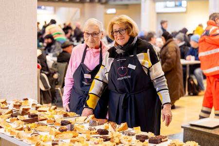 „Jeder Gast bekommt zwei Stücke Kuchen nach dem Mittagessen. Bei rund 700 Gästen am Tag sind das etwa 1.400 Kuchenstücke – das ist logistisch eine echte Herausforderung“, erklärt Birgit Stegmann, die sich seit 19 Jahren ehrenamtlich in der Vesperkirche engagiert. „Umso dankbarer sind wir für jede einzelne Spende.“